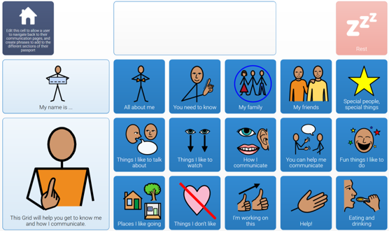 This grid set is based on the Communication Passport designed by CALL Scotland.