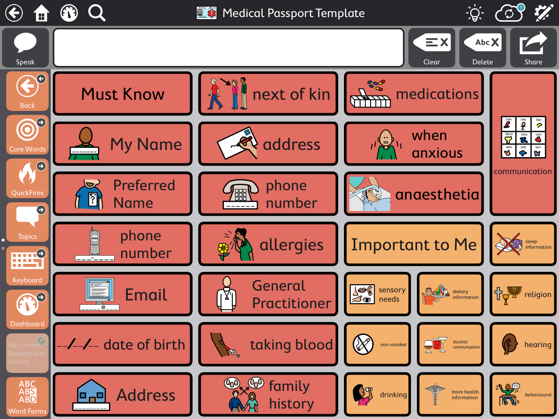 Pageset Central. - Medical Passport and Pain Scale Pagesets.